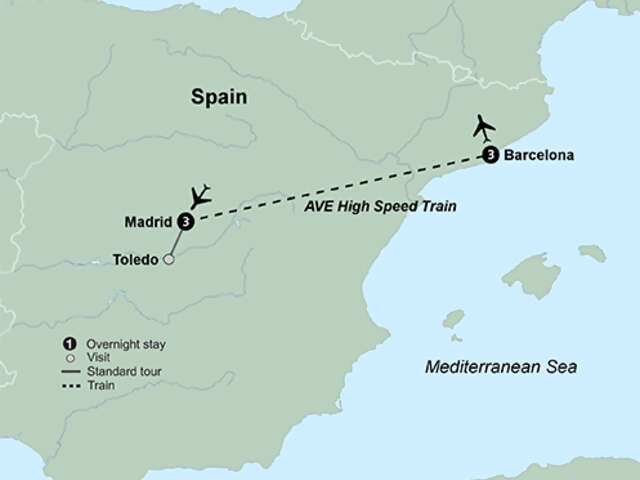The dynamic cities of Madrid and Barcelona come to life on this in-depth adventure. The thrilling AVE high-speed train transports you between your leisurely 3-night stays in each city. Travel to Toledo, the former capital of medieval Spain. Choose to explore Madrid’s famed Prado Museum OR take a Hapsburg Madrid walking tour. In Barcelona, explore the most popular monument in Spain, Antonio Gaudí’s La Sagrada Familia. Choose to discover Barcelona’s historic Gothic Quarter and 13th-century cathedral OR stroll through La Boqueria, Barcelona’s oldest open-air market, and tour a few of Gaudí’s architectural treasures. Explore the flavors of the country during a paella culinary workshop with locally acclaimed chefs. Dine on regional cuisine and sample local wines at every included dinner. Countless cultural adventures are ahead as you make your way through these two amazing cites.