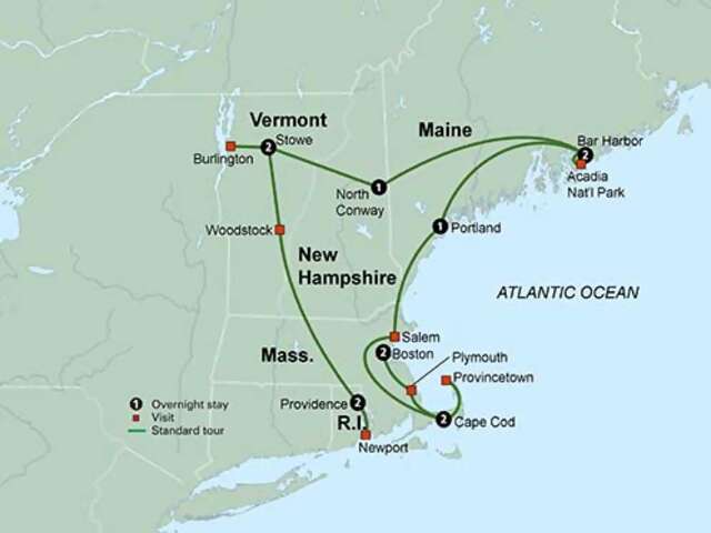 Weave your way through the cities and back roads of charming New England. Traverse the scenic Kancamagus Highway that reveals breathtaking vistas at every turn. Spend the two nights in Maine’s quaint Bar Harbor. Enjoy a true taste of the region with a traditional lobster dinner. On Cape Cod, you choose to set out on a whale watch cruise or embark on a scenic adventure through the iconic sand dunes of the Cape. Discover Plimoth Plantation, a re-creation of a 17th-century village, where you will “Eat Like a Pilgrim” – learning 17th-century table manners from a culinary historian. Take in the best of Boston during a tour featuring the Old South Meeting House, the Boston Public Gardens, the Old North Church, Beacon Hill, and the USS Constitution. From its bustling cities to its majestic mountains and the quaint seaside villages, the tapestry of New England is sure to captivate you.