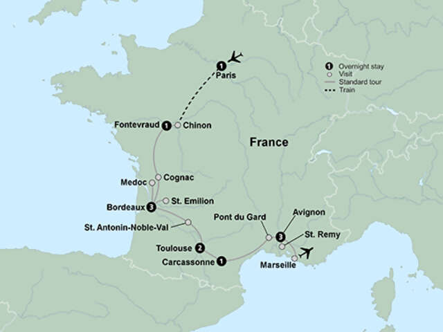 Delve into the culture, cuisine and history of Southern France. Along the way, enjoy tours and tastings in some of the nation’s most famous wine regions. Experience a bit of Parisian life before taking the TGV to the Loire Valley. Relax during a night in the magnificently renovated Abbaye de Fontevraud. Witness the UNESCO wine region and medieval village of Saint-Emilion. In Bordeaux, visit a winery and drive along the famed “route des chateaux”. Stroll amid the narrow streets and half-timbered houses of Saint-Antonin-Noble-Val. Tour and stay at the spectacular fortress at Carcassonne. Sample the flavors of Provence at the delightful Wednesday market at Saint-Remy-de-Provence. Tour the village of Avignon and marvel at the color and light show in Les-Baux. Many incredible moments and surprises await as you come to know Bordeaux and Provence.