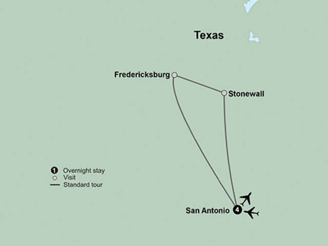 Relax Texas-style when you settle into your River Walk hotel on this 5-day Spotlight on San Antonio tour. Visit the UNESCO World Heritage sites of the legendary Alamo and Mission San José. You’ll choose your activity – the South Texas Heritage Center Witte Museum to learn about the history of the San Antonio region OR explore the San Antonio Botanical Gardens. Journey to Stonewall to spend time at the LBJ Ranch, birthplace of the 36th President of the United States, Lyndon B. Johnson. Venture to charming Fredericksburg nestled in the Hill Country and rich with German heritage. Discover the bold flavors of Texas during your tour of an olive orchard, sampling the local olive oils and wines. Savor dinner at a restored convent in the historic King William District. Cruise along the Paseo del Rio and immerse yourself in the laid-back atmosphere of this Texas city.