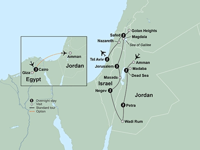 Delve into the past and present of Jordan and Israel, uncovering a land of quiet deserts, modern coastlines, ancient ruins, and spiritual roots. Soak in the natural minerals of the Dead Sea – the lowest point on Earth. Venture through the red-rock city of Petra with a local guide. Traverse the desert on a 4×4 and see the ethereal moonlike landscape of Wadi Rum. Engage in a poignant discussion with a Holocaust survivor at the World Holocaust Remembrance Center. Dine with a local family at a home-hosted dinner. Walk through the vibrant stalls of the Jaffa Flea Market in Tel Aviv. Discover unwavering cultures and connect with the locals as you experience the best of 2 iconic countries.
