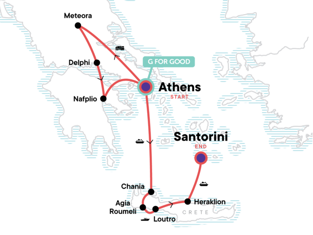 This trip uses a range of different transport, including local ferries, buses, and walking (up to 20 minutes with luggage). PLEASE NOTE: You will be responsible for carrying your own luggage at all times, including when embarking and disembarking ferries, and up and down stairs. Most hotels in Greece also do not have elevators.