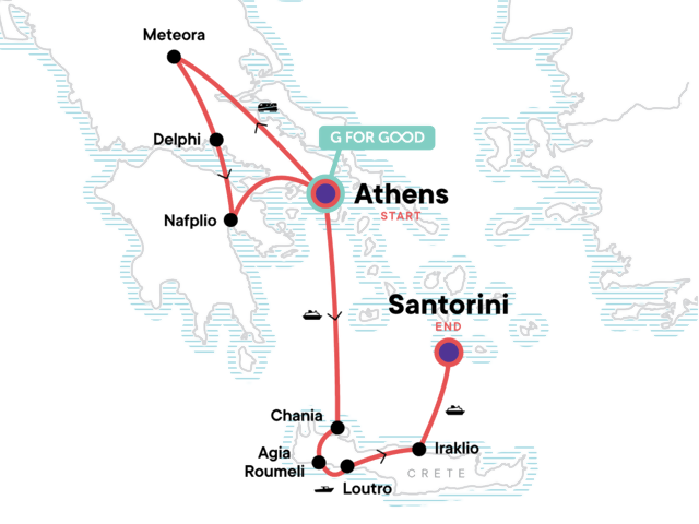 Your Foodie Moment: Cooking Class Athens, Athens. Athens orientation walk. Guided tour of Ancient Delphi. Samariá Gorge hike. Knossos visit. All transport between destinations and to/from included activities.