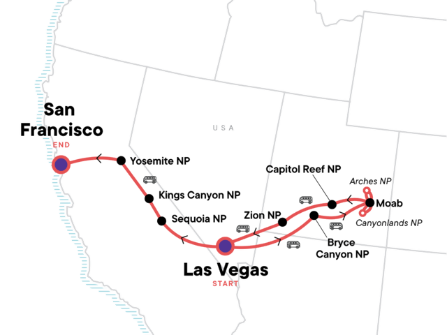 4. In order to cover the vast distance in North America to be able to visit several different parks and cities along our trip, we will have a couple of long driving days.