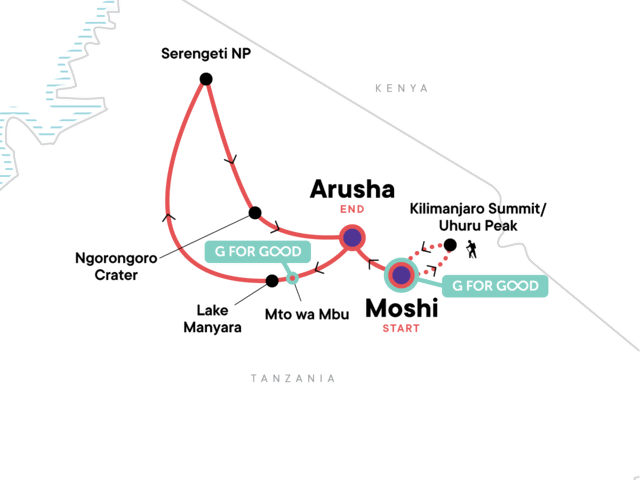 Please note that this tour is a combination of two G Adventures tours. This trip combines our Kiliminjaro Trek (DTKM), Tanzania Wildlife Experience (DTWE).