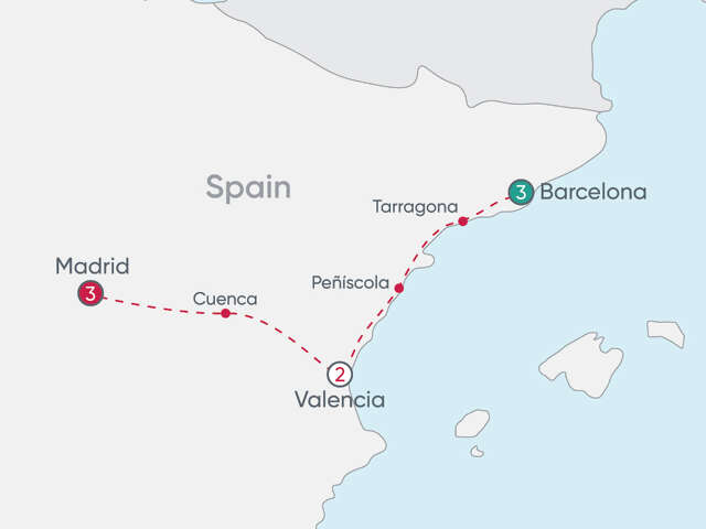 Barcelona, Valencia, and Madrid are spectacular Spanish cities: Barcelona, home of great artists Gaudi, Picasso, and Miro; Valencia with its contemporary architecture matched only by its fantastic food, fun, and beach life; and Madrid, the elegant city of sophistication and lively atmosphere. Begin your escorted vacation in Spain with three nights in Barcelona with your days free to discover and enjoy. Cosmos Lite gives you à la carte options to spend your vacation the way you want. Maybe select an optional tapas walking tour or a wine tasting to sample Spanish fare and vintages. Your Tour Director is on hand to point you in the direction of the best sights, food, and attractions. On your way to Valencia, you’ll see the Peñíscola coastline and castle—a filming location for Game of Thrones. Continue on while admiring the magnificent views of the Mediterranean Sea, to visit Valencia and Madrid. Lovers of art, food, and colorful history are sure to find lots to discover—with optional excursions in the heart of Spain’s most fascinating locales. Your guided tour of Spain is yours to shape each day with Cosmos Lite optional excursions. With MyCosmos, you’ll find the perfect way to experience Spain’s legendary cities just the way you like—from museums and markets to cathedrals, coastlines, and fantastic Spanish cuisine. Explore the treasures of España your way, every day!
