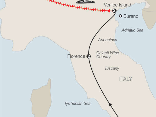 ROME Welcome dinner with wine at a local restaurant; guided sightseeing, visit the Colosseum and Roman Forum, the Vatican Museums and Sistine Chapel, St. Peter’s Square and BasilicaFLORENCE [LF] Dinner at a local restaurant; guided walking tour, visit Michelangelo’s David and Signoria SquareVENICE Private boat ride, guided walking tour, visit St. Mark’s Square and Basilica, Doges’ Palace and the Bridge of Sighs; [LF] glassblower demonstration with surprise gift; [LF] farewell drink at Caffé FlorianVENICE ISLAND-LAKE MAGGIOREBy high-speed TrainLAKE MAGGIORE Guided sightseeing and boat ride to Isola Bella to visit the baroque palace and peacock gardensHeadsets throughout the tour