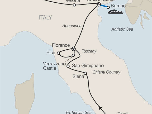 ROME [LF] Welcome dinner at the rooftop restaurant of your hotel overlooking Rome; guided sightseeing, visit the Vatican Museums and Sistine Chapel, St. Peter’s Square and Basilica, [LF] admire Michelangelo’s Moses in St. Peter in Chains; visit the Colosseum and Roman ForumSIENA Walking tour including Piazza del CampoSAN GIMIGNANO OrientationFLORENCE Guided walking tour, visit Michelangelo’s David and Signoria Square, and Santa Croce BasilicaPISA Marvel at the legendary Leaning TowerVERRAZZANO CASTLE [LF] Wine tasting and lunchBURANO Lagoon cruise and island visitVENICE Private water taxi ride by night; glassblower demonstration; private boat ride; guided walking tour, visit St. Mark’s Square and Basilica, Doges’ Palace and the Bridge of Sighs VERONA Walking tour including Juliet’s balcony and the ArenaMILAN Walking tour, visit the museum of La Scala Opera House and the Galleria; farewell dinner at a local restaurantHeadsets throughout the tour
