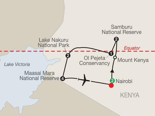 NAIROBI Visit the Sheldrick Elephant Orphanage, Karen Blixen Museum, and the Giraffe Center; Host service during your staySAMBURU NATIONAL RESERVE Three game drivesOL PEJETA CONSERVANCY Two game drives; visit a [LF] chimp sanctuaryLAKE NAKURU NATIONAL PARK Two game drivesMAASAI MARA NATIONAL RESERVE Three game drives; sundowner drinks; [LF] traditional Maasai dance performance; bush breakfastMAASAI MARA EXTENDED STAY Four game drives; Driver/Guide service during your stayBottled Water Included on all game drives and with all meals