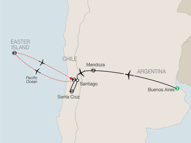 This Argentina and Chile tour featuring the vineyards of South America combines cosmopolitan cities, picturesque wine regions, and world-famous Easter Island.Experience one of the world’s top wine-growing regions, Mendoza, nestled against the Andes Mountains with a mild and sunny climate and some of the region’s famous wine valleys. During your time in Mendoza, tour some of the top wineries and taste some of the top wines. Here, Globus has also arranged special experiences for you. Partake in a cooking class and learn how to make empanadas. Also dine at one of South America’s most famous restaurants, 1884 Restaurante. Wine lovers will also enjoy time in Santa Cruz in Chile’s Colchagua Valley, famous for its Mediterranean climate and nicknamed Chile’s Napa Valley. Your visits here include renowned wineries Viña Santa Cruz, Casa Lapostolle, and Viña Viu Manet.On this Argentina and Chile tour, also spend time in the vibrant cities of Buenos Aires and Santiago. In Buenos Aires, an Old World European atmosphere meets Latin passion. Get to know the various neighborhoods on your sightseeing tour followed by a night of Tango featuring a lesson and show. In Chile’s vibrant capital, Santiago, your time includes a stop at one of the city’s best markets, La Vega, where you can eat like the locals do. Also enjoy an excursion to the coastal towns of Viña del Mar and Valparaiso, where you’ll get to know these charming fishing villages turned beach resorts. On Easter Island, marvel at the stone head statues—known as moai—that were carved by the Polynesian seafarers that settled on the island around 300 AD. Weighing an average of 13 tons each, they are nothing short of spectacular! Vibrant cities, enjoyable wine regions, and Easter Island…this Argentina and Chile vacation has it all and more!